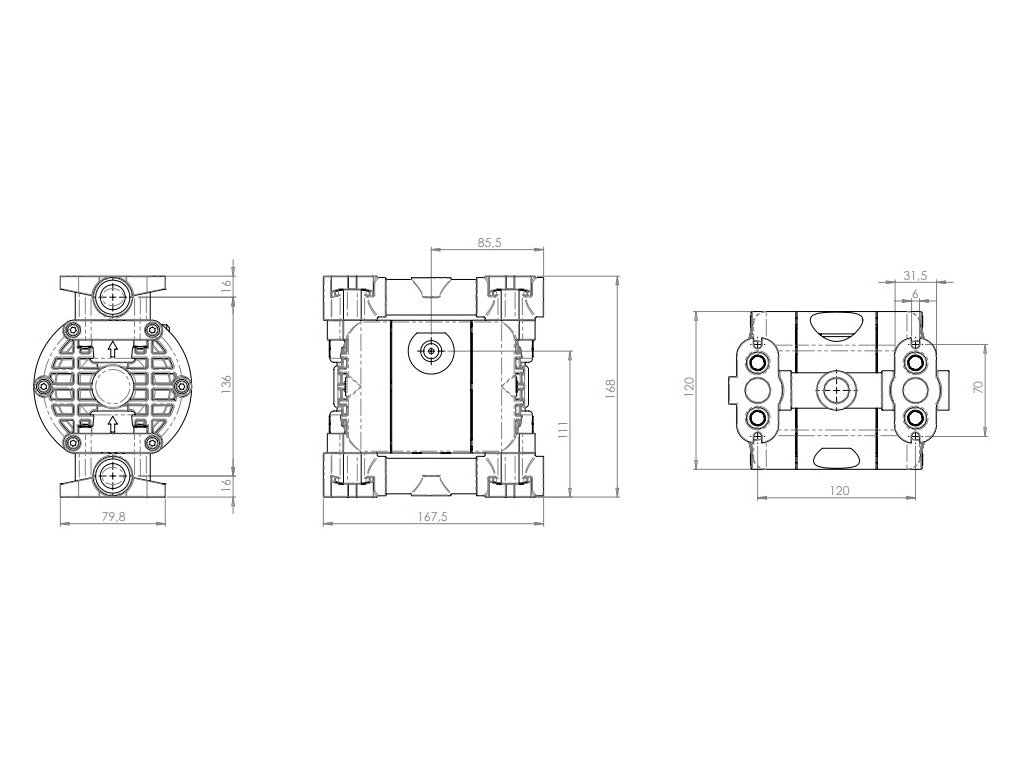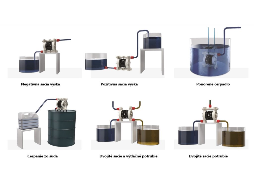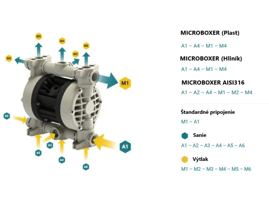 Vzduchomembránové čerpadlo značky DEBEM BOXER v PVDF vyhotovení s membránami z materiálu PTFE (Teflon) je vhodné na rôzne média - na rôzne kyseliny a zásady s teplotou média do max. 90 °C. Maximálny výkon: 35 l/min.