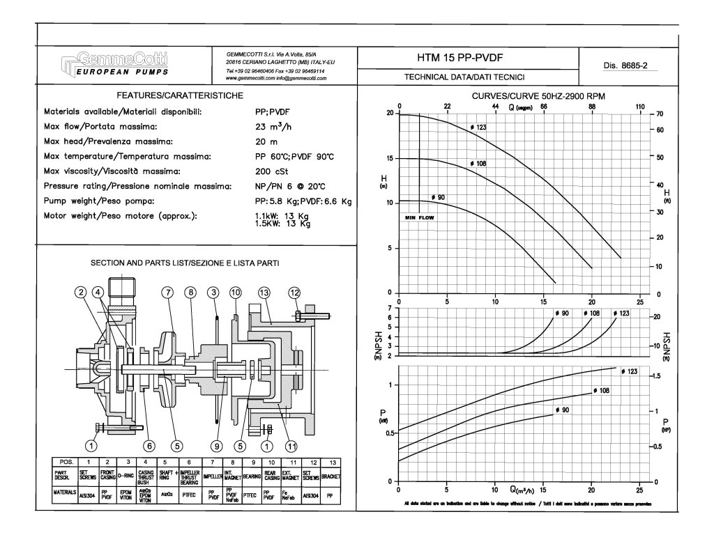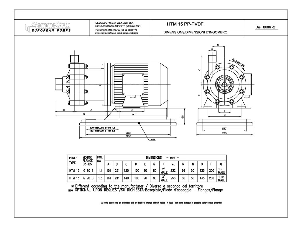 ■ Pripojenie sanie/výtlak: 2" BSP vonkajší závit / 1 1/2" BSP vonkajší závit