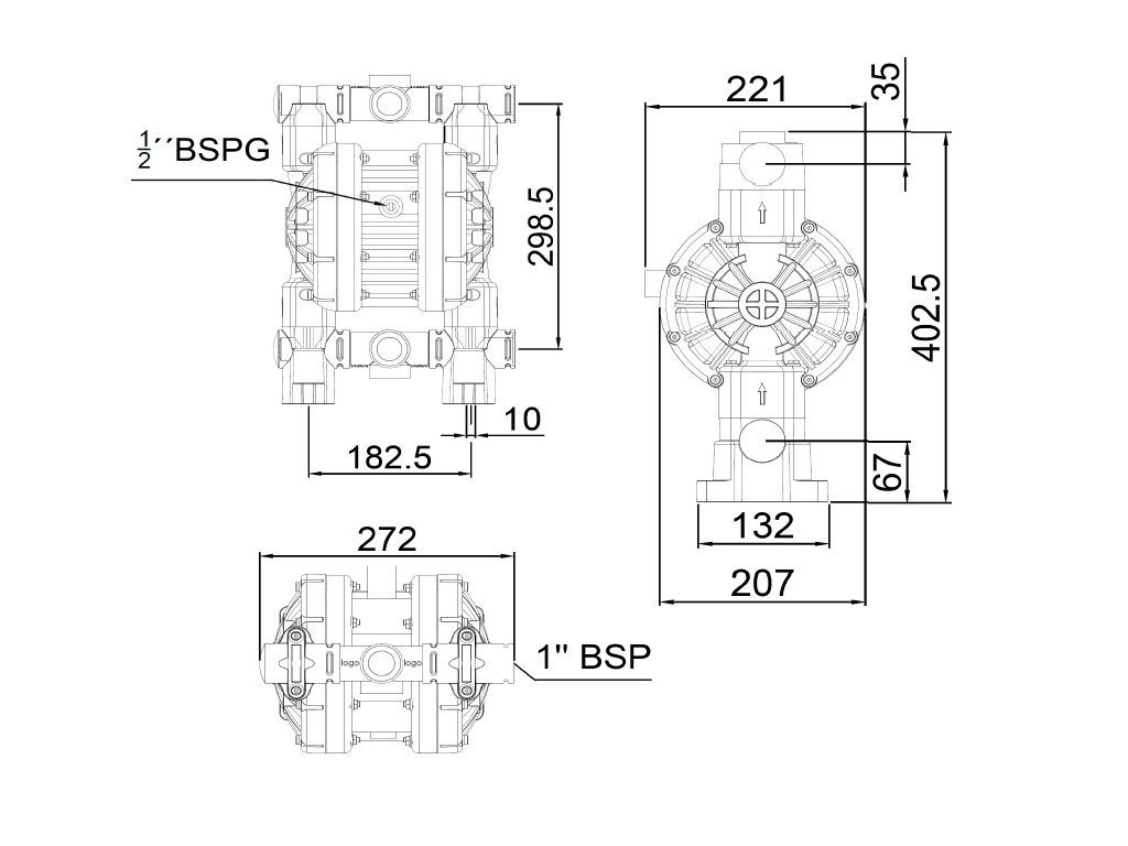 Vzduchomembránové čerpadlo značky RUBY v PP vyhotovení s membránami z materiálu PTFE (Teflon) je vhodné na rôzne média - na rôzne kyseliny a zásady s teplotou média do max. 60 °C. Maximálny výkon: 168 l/min.